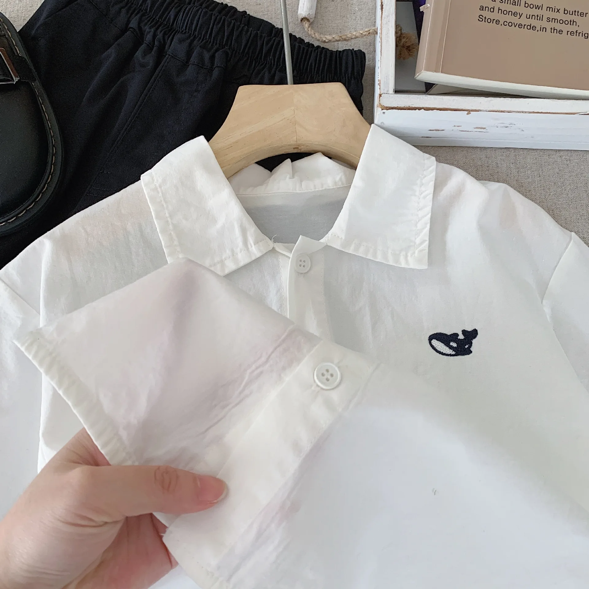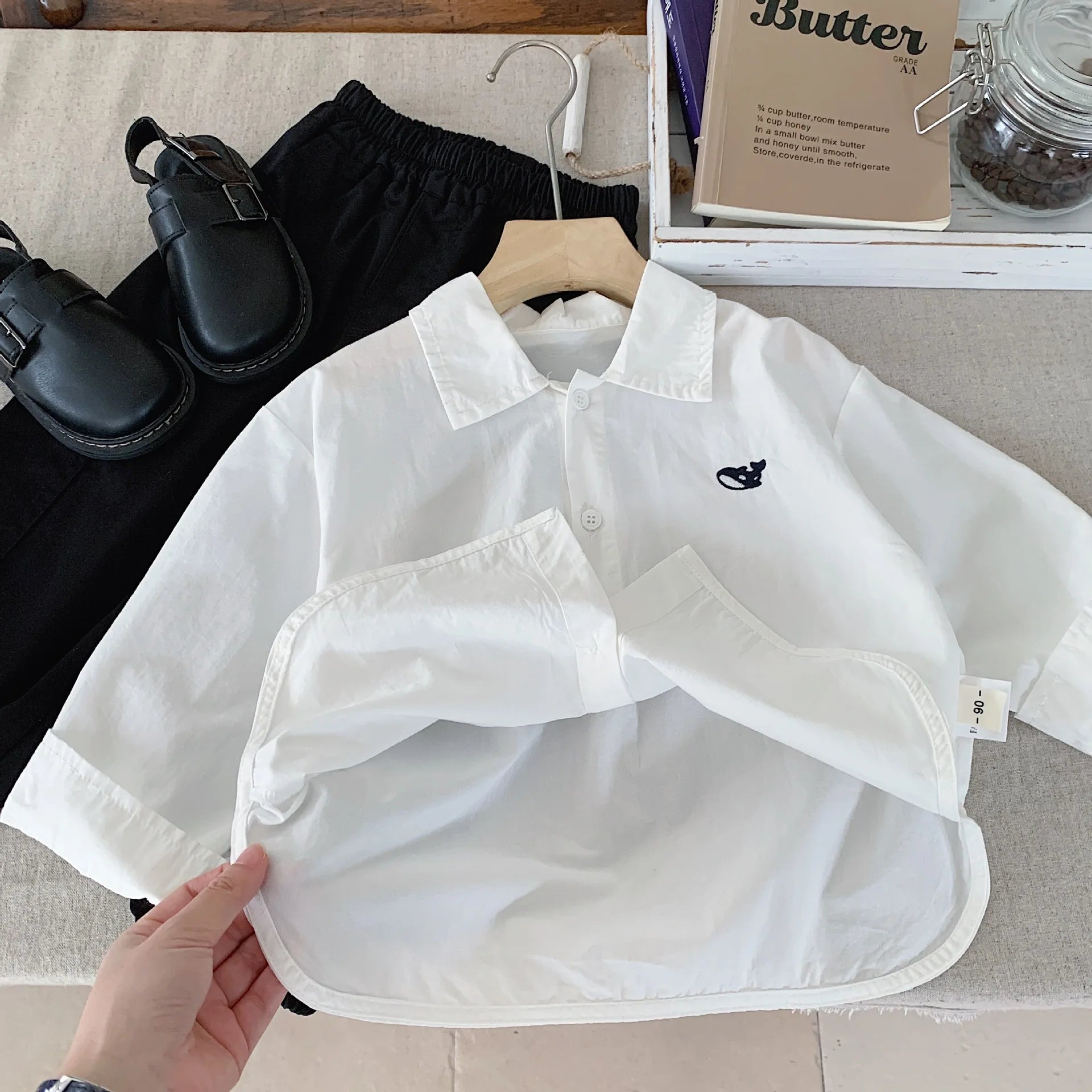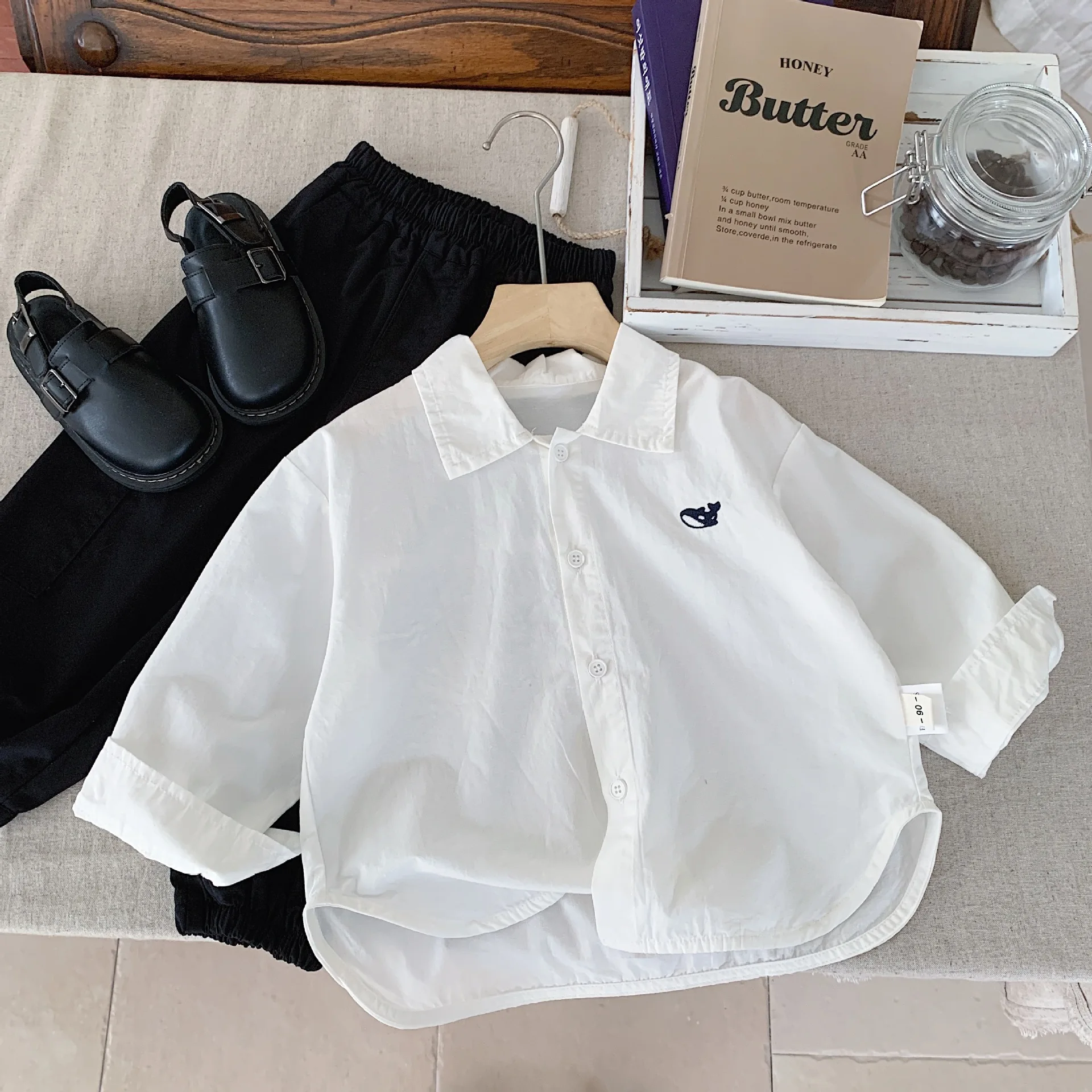 1. **Fit & Style**: Long-sleeve Peter Pan collar shirt fits kids aged 2-7; front buttons enable easy dressing.