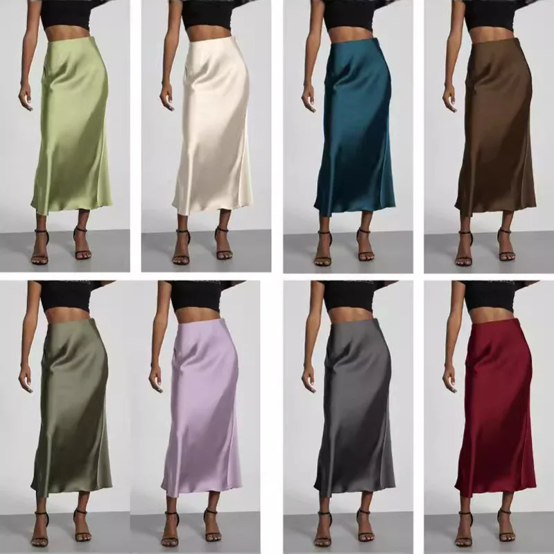 21 Colors Elegant High Waist Satin Long Skirts