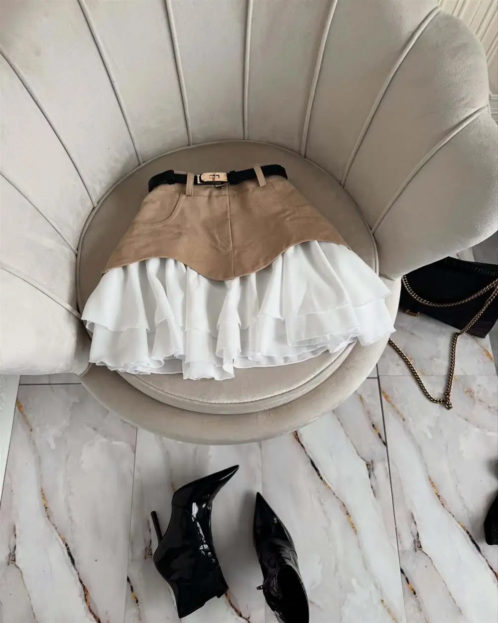 Crafted from durable PU material, this denim skirt ensures long-lasting wear.