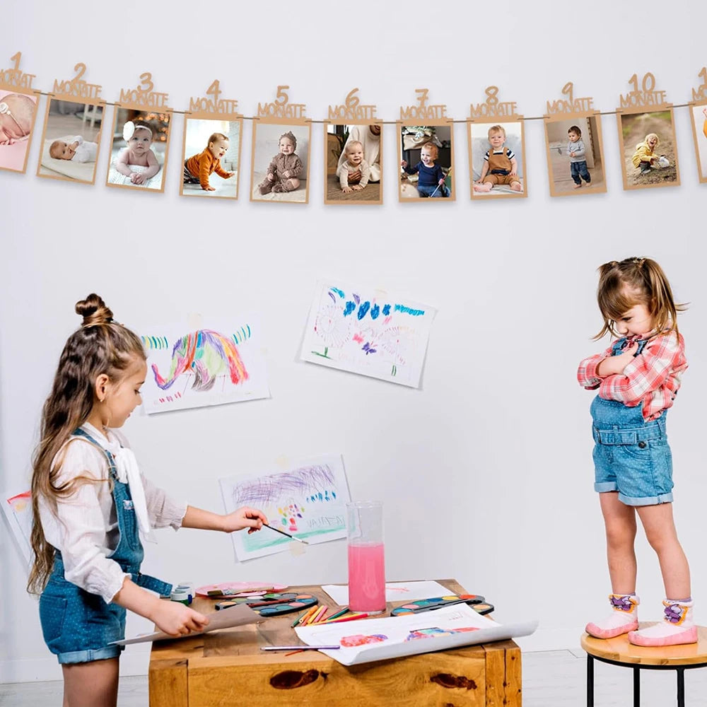 Baby 1st Birthday 12 Months Photo Frame Banner Baby Boy Girl one 1 Year Birthday Photo Garlands Baby First Birthday Party Decor