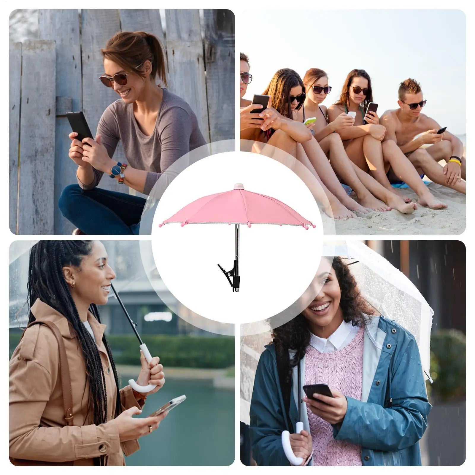Cell Phone Umbrella Sun Protection Phone Clip Creative Mini Umbrella Phone Stand Stylish Holder Blocking Cellphone Accessories