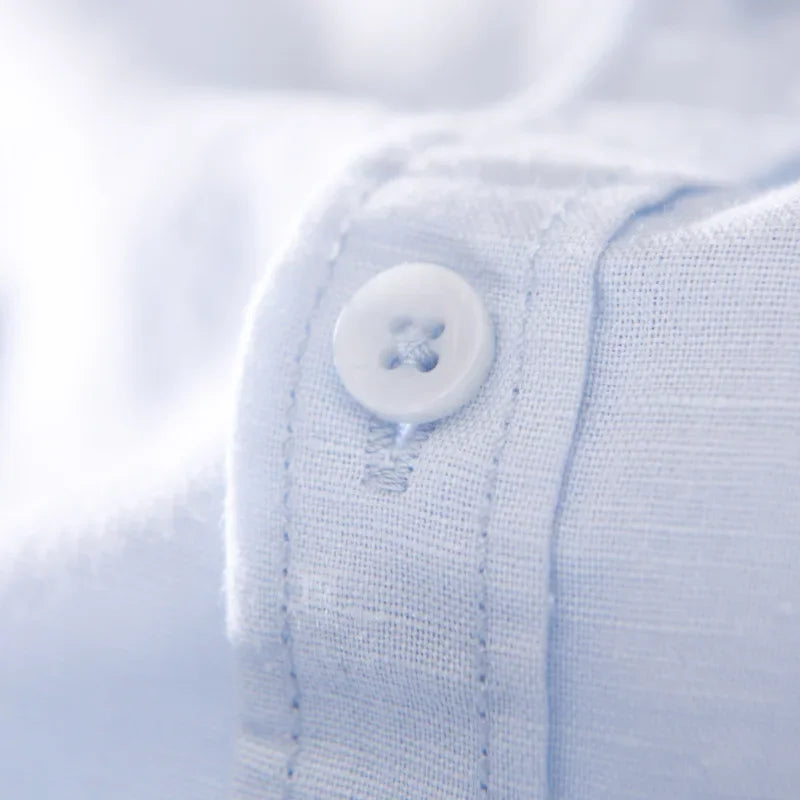 Cotton Linen Short Sleeve Shirts For Men Casual Fashion Yellow Turn Down