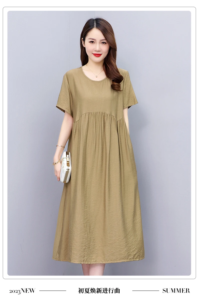 Vintage Elegant Short Sleeve Solid Women Dress O-Neck Dresses