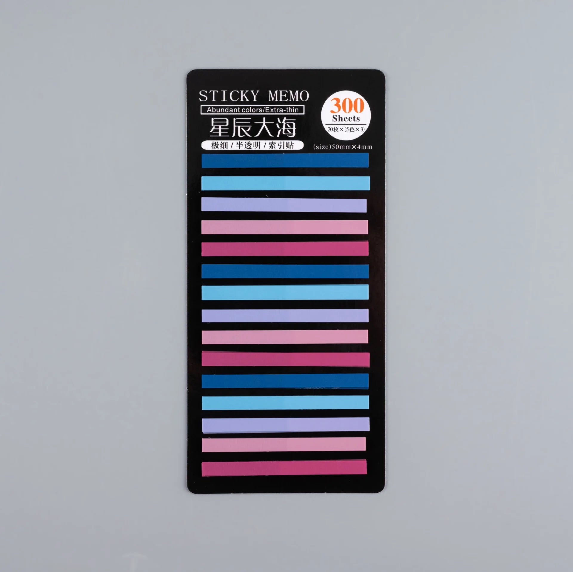 Rainbow Long Index Stickers 300 Sheets Fluorescent PET Waterproof Color Note Marking Key Semi Transparent Sticky Notes