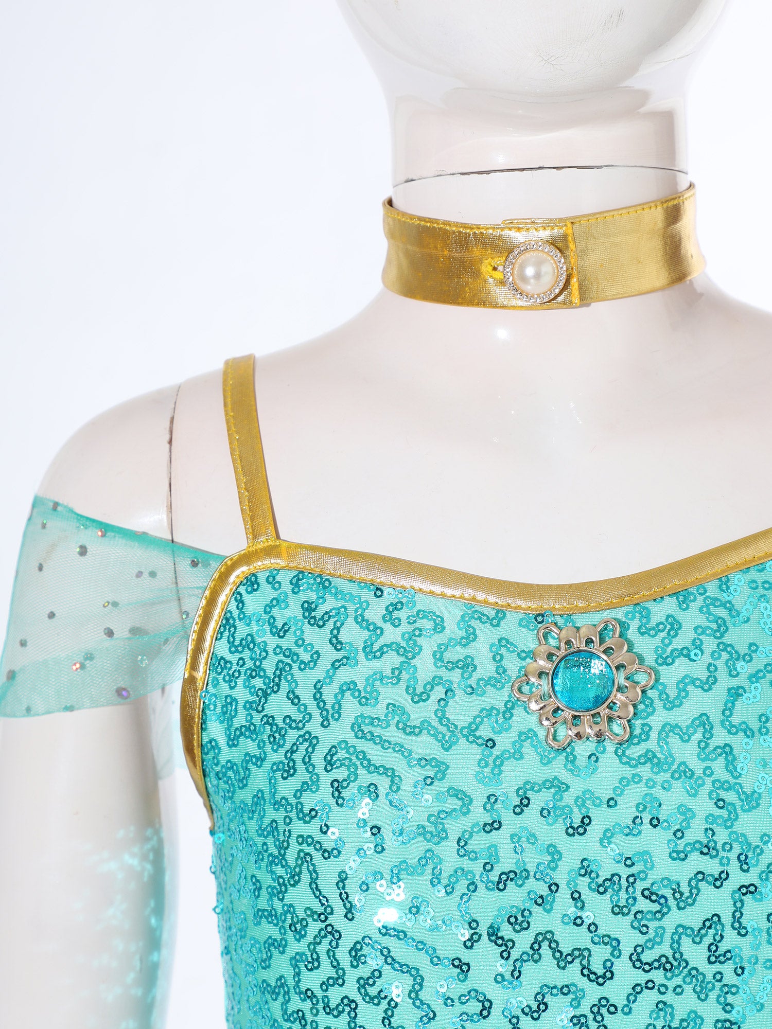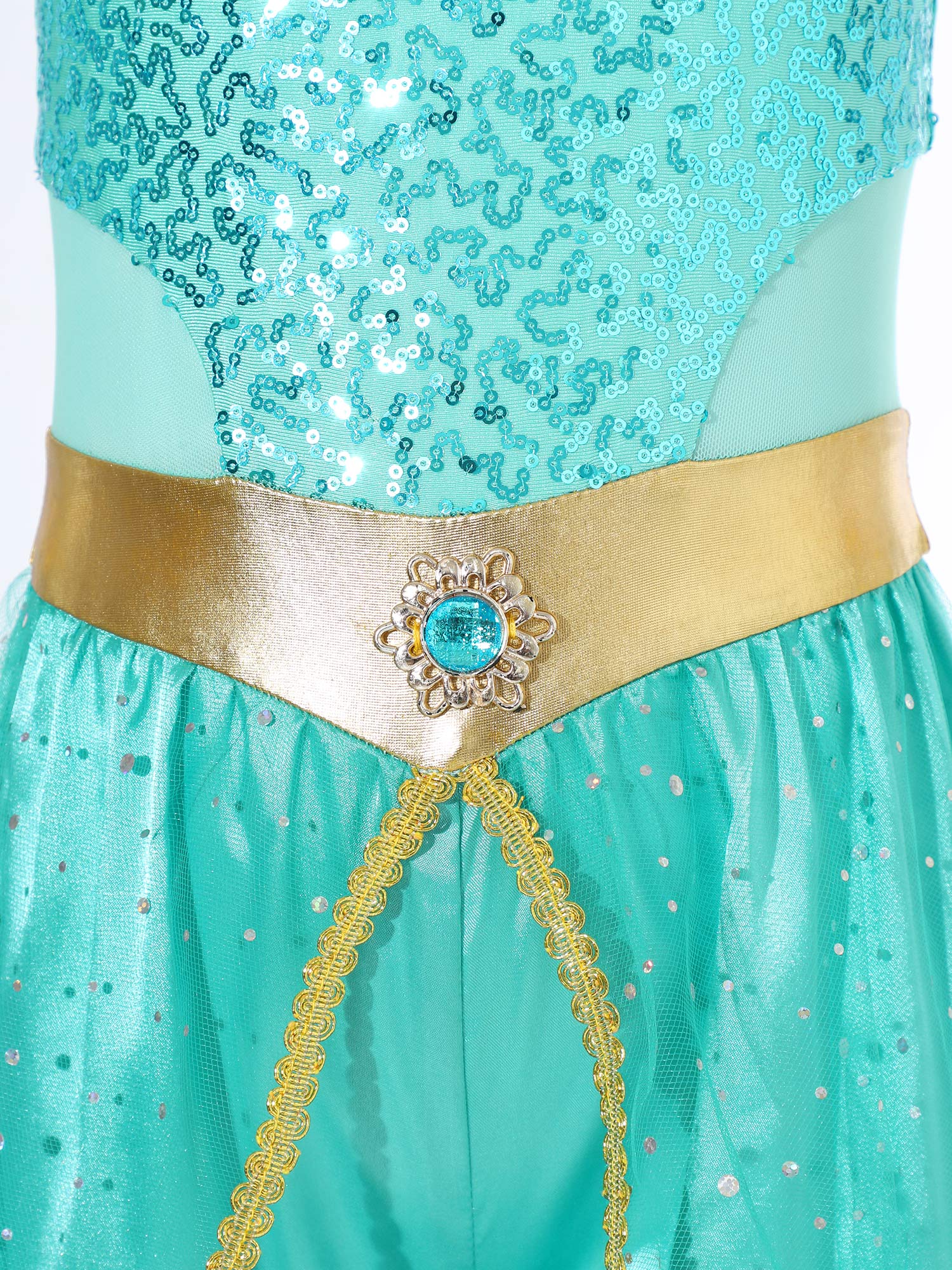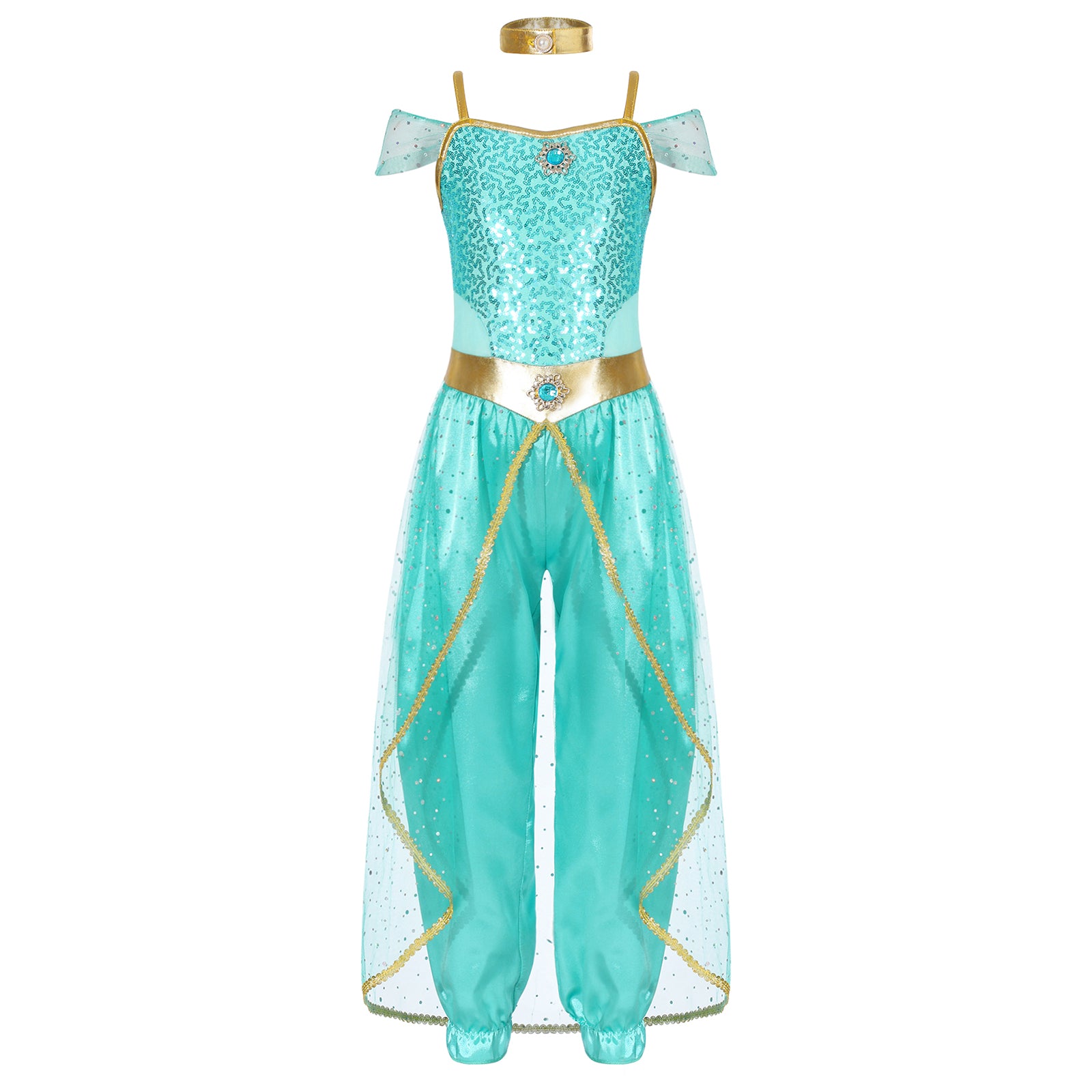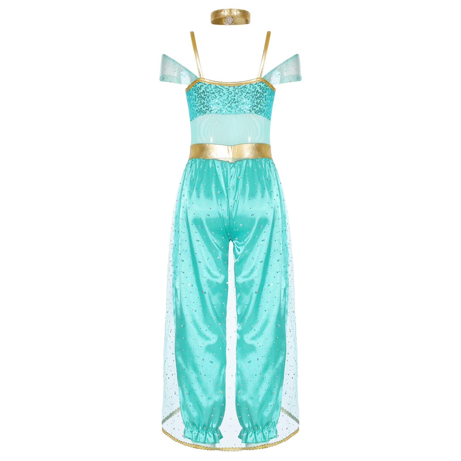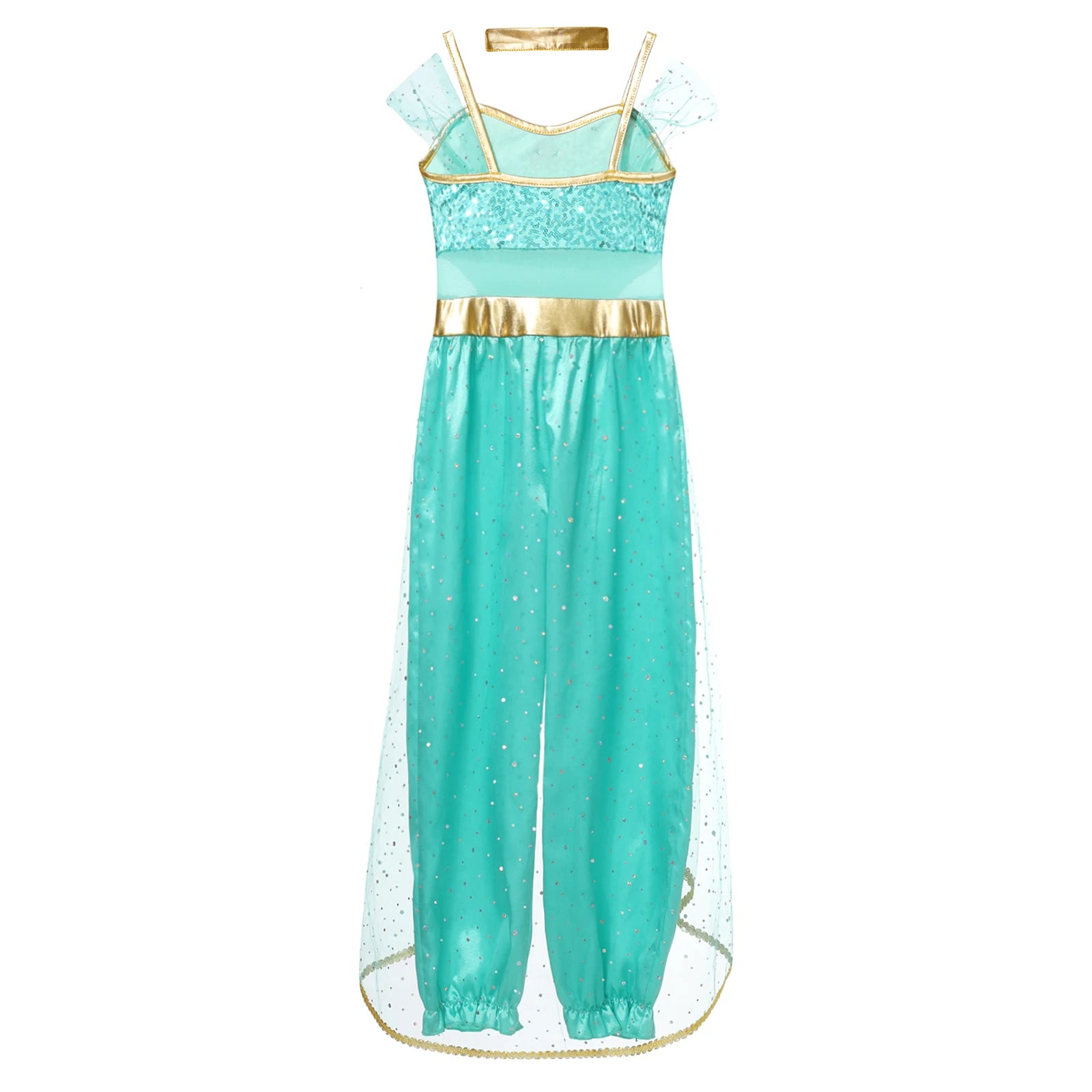 #6-16 Halloween Cosplay Arabian Princess Costume Sleeveless Shiny Sequins Gem Patchwork Long Jumpsuit Bodysuit with Choker for Role Playing Fancy Party Dress Up Costume Teen Stage Dance Performance