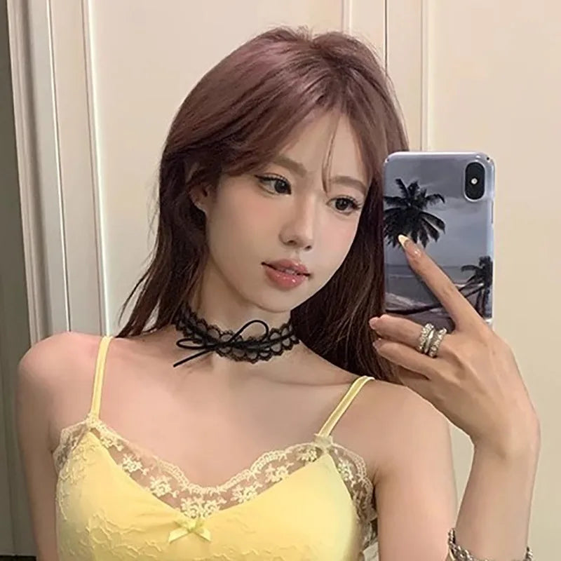 Women Fashion Cute Lace Collar Lolita Handmade Vintage Lace Bow Choker
